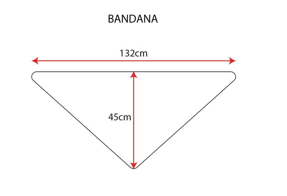 Triangular bandana in red with white trim.